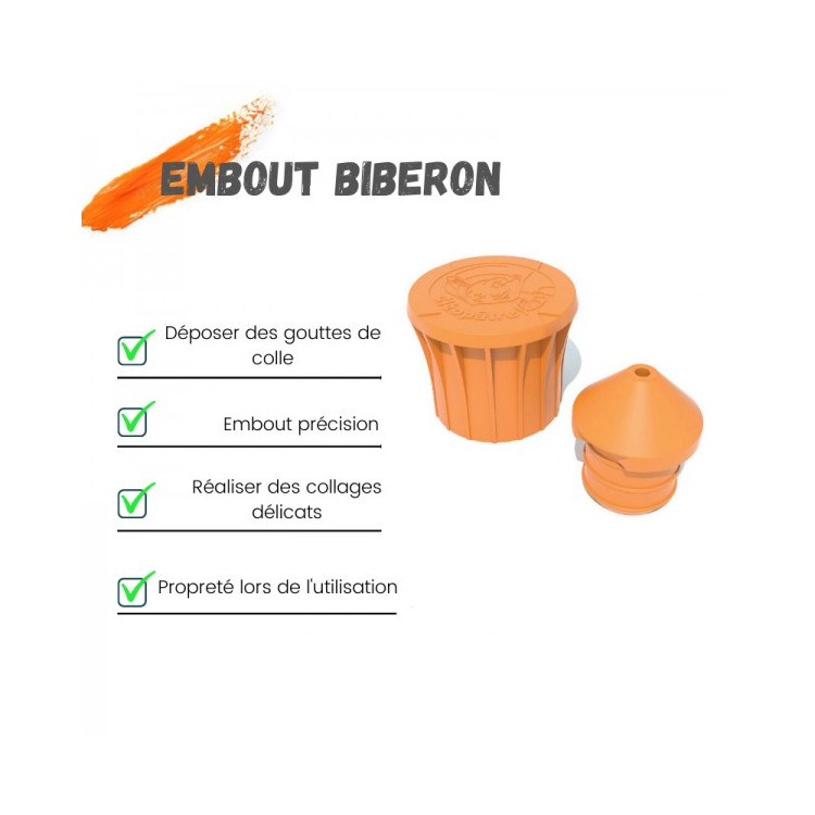 Embout biberon de précision permettant de déposer des gouttes de colle sur le support .