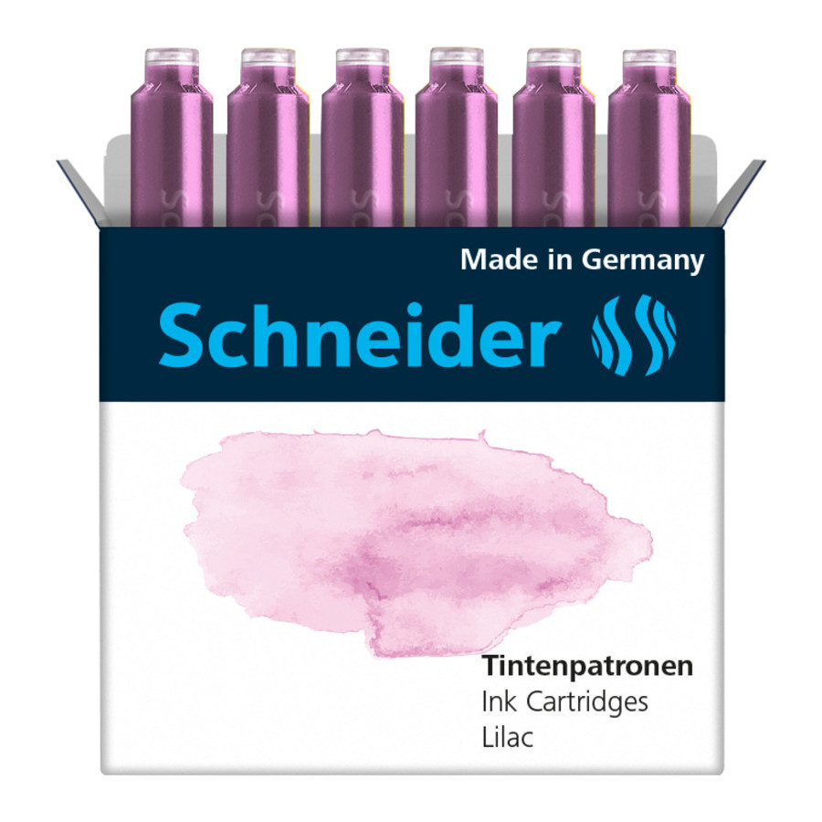 Cartouches d'encre pastel unique en couleur d'encre "lilac", avec lesquelles chaque style d'écriture prend tout son sens et il n'y a pas de limites à la créativité. Convient aux produits Schneider et à la plupart des stylos à plume et rollers à cartouche. Une boîte avec 6 cartouches d'encre. Qualité made in Germany.