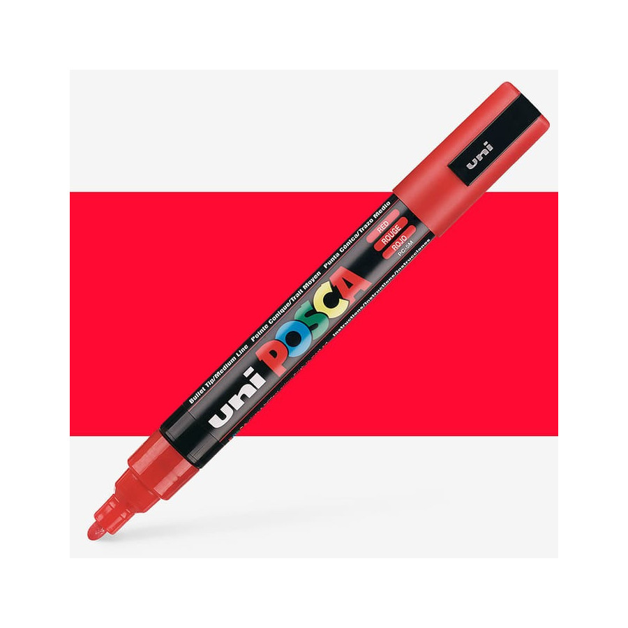 Alliant polyvalence et performance, le feutre Posca PC-5M Rouge est l'un des outils les plus appréciés de la gamme. Sa pointe moyenne de 1,8 à 2,5 mm permet un tracé précis et fluide, tout en offrant une excellente capacité de remplissage. Idéal pour dessiner, colorer, décorer ou customiser, il s'adapte à tous les niveaux de pratique - du professionnel de la création à l'amateur passionné. Sa teinte rouge éclatante apporte intensité et chaleur à toutes vos réalisations, qu'il s'agisse d'un projet artistique, décoratif ou technique. Le Posca PC-5M est compatible avec de nombreux supports : bois, pierre, béton, textile, papier, verre, métal ou plastique. Son encre à base d'eau, couvrante et inodore, assure un rendu uniforme, sans bavure, et une adhérence durable sur les surfaces poreuses. Caractéristiques principales : Largeur du trait : 1,8 à 2,5 mm Pointe : Moyenne Corps : Plastique Couleur : Rouge Encre : Pigments à base d'eau, opaque, inodore et non toxique Utilisable sur toutes surfaces : papier, bois, pierre, béton, textile, verre, métal, plastique, etc. Séchage rapide et couvrance parfaite Effaçable sur surfaces lisses (verre, plastique), permanente sur surfaces poreuses Applications idéales : Artistes et créateurs professionnels : croquis, esquisses, mises en couleur Architectes et designers : rendus, maquettes, signalétique Amateurs de loisirs créatifs et de home déco Passionnés de customisation : planches, casques, accessoires, mobilier