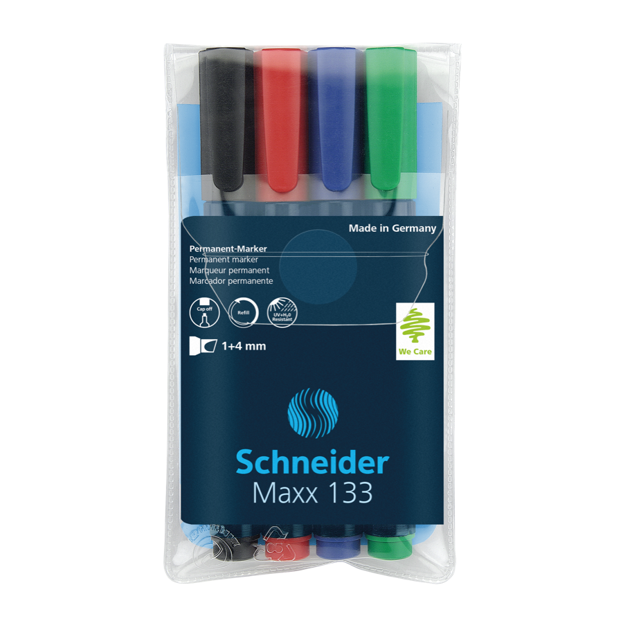 Marqueur permanent avec pointe une BISEAUTEE pour carton, papier, plastique, verre, métal, bois et autres matériaux. Séchage rapide résistant à l'eau et à la lumière, encre avec une faible odeur sans toluène et xylène. Encre cap-off, peut rester ouvert 2 - 3 jours. SCHNEIDER propose des solutions pour toutes les principales utilisations, surligneurs, marqueur etc. Le tout dans différentes couleurs et largeur de traits. La meilleure qualité d'utilisation, la sécurité des encres utilisées mais aussi la protection de l'environnement sont nos axes prioritaires de développement.
