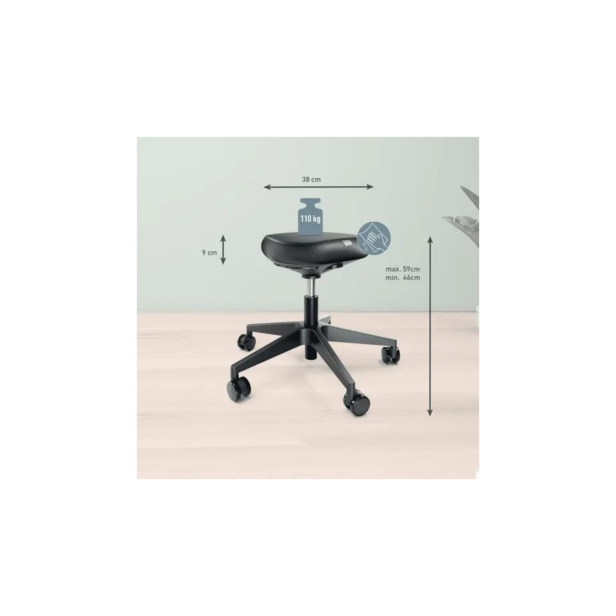 Le tabouret Leitz Ergo est conçu pour épouser parfaitement la forme de votre bassin grâce à son siège triangulaire. Il répartit le poids uniformément, soulage la pression sur les jambes et favorise une posture droite, idéale pour les longues journées de travail.