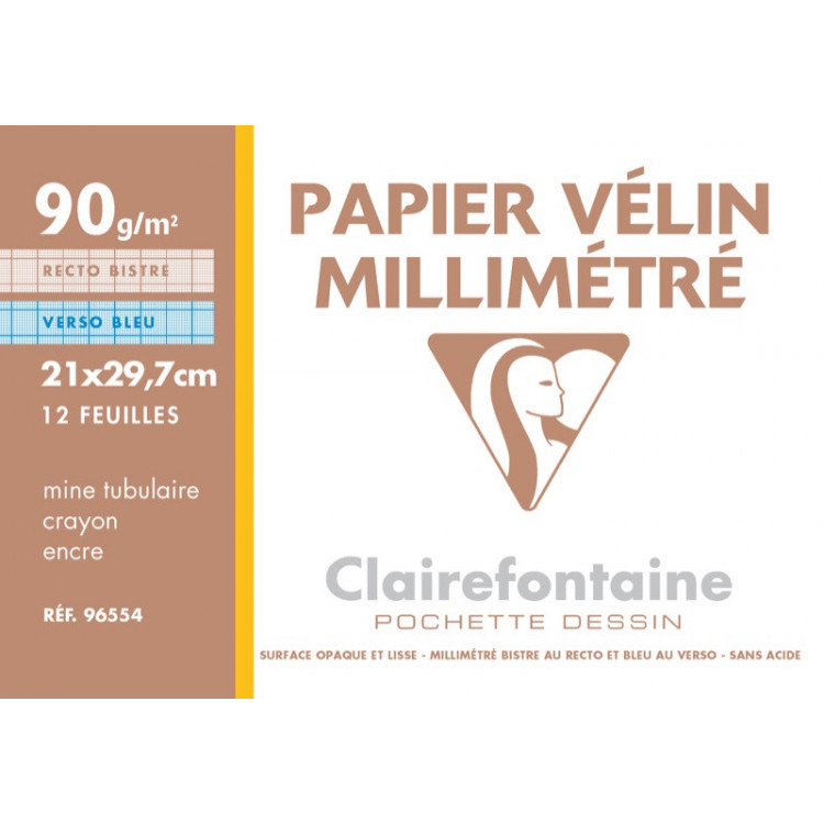 Pochette de 12 feuilles papier dessin millimétré - Format A4 (21x29.7) - 90g.